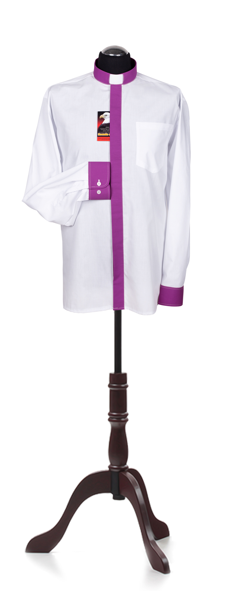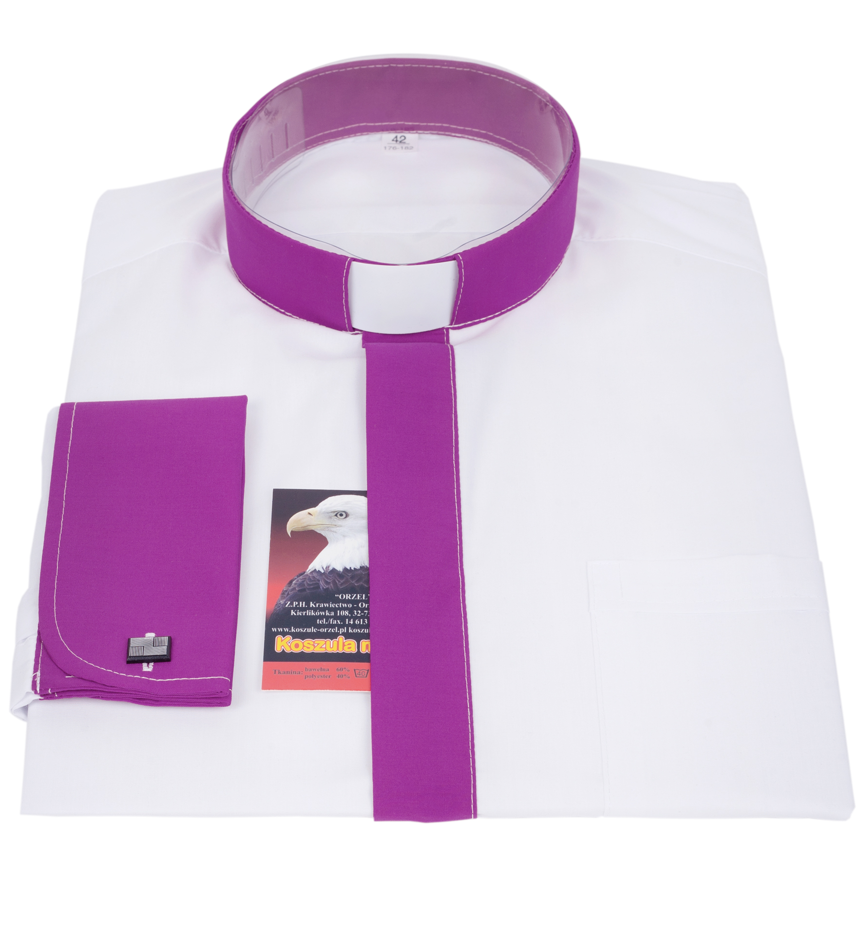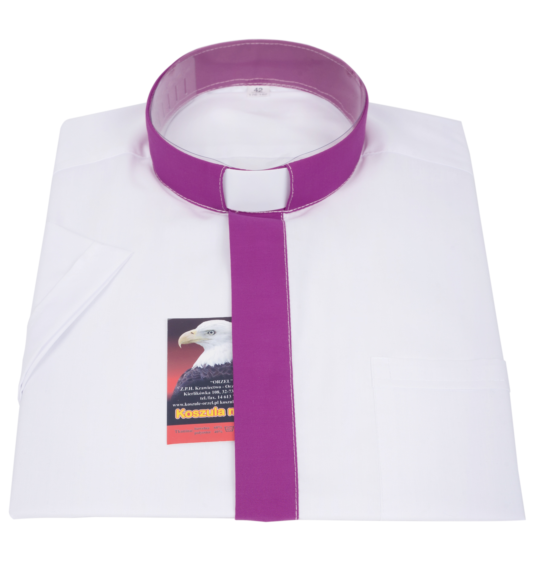 Koszula dostępna jest z tradycyjnym kołnierzykiem kapłańskim na krótki listek o różnych opcjach konfiguracji.
